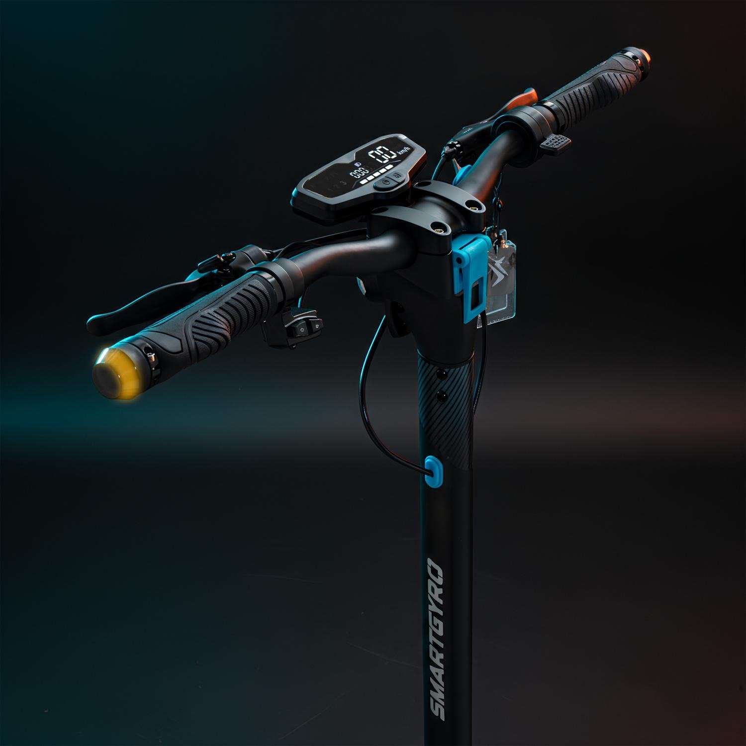 Este patinete también incorpora un sistema de frenado triple que incluye frenos de disco delantero y trasero junto con frenada regenerativa, aportando mayor control y seguridad en cada frenada. El conjunto de iluminación LED, incluidos intermitentes y luces ambientales, aumenta la visibilidad en condiciones de poca luz y aporta un diseño moderno.